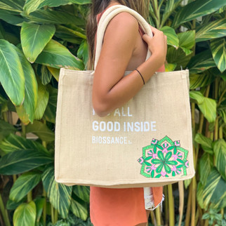 a biossance é a primeira marca clean beauty no brasil, cruelty-free e vegana, super sustentável. quando foi lançar no brasil sua nova linha tea tree, toda com ingredientes naturais, chamou a kalaii para customizar as bolsas que seriam dadas às convidadas durante o evento, recheadas de produtos biossance.